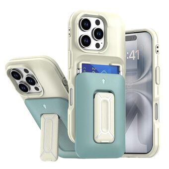 For iPhone 16 Pro Sliding Card Holder Integrated Phone Case with Kickstand(Beige Green)