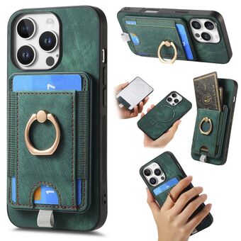 For iPhone 16 Pro Retro Folding Ring Holder Card Bag MagSafe Phone Case(Green)