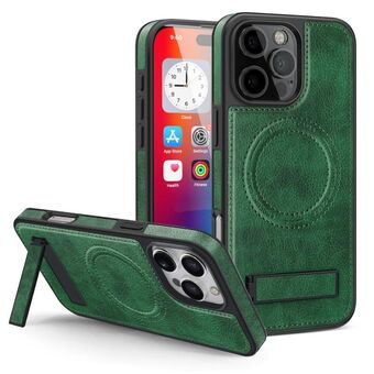 For iPhone 16 Pro Plain Leather Hydric Metal Holder MagSafe Phone Case(Red)