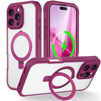 For iPhone 16 Pro Solid Color 360 Degree Rotating Holder MagSafe Magnetic Phone Case(Purple)