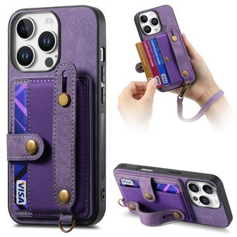 For iPhone 16 Pro Card Holder Stand Shockproof Phone Case(Purple)
