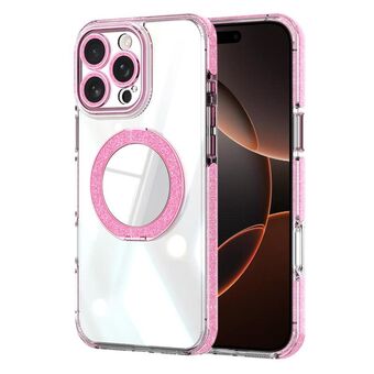 For iPhone 16 Pro Transparent Glitter Mirror Rotating Holder Phone Case(Pink)