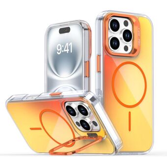 For iPhone 16 Pro Gradient Discolor Lens Kickstand Magsafe Phone Case(Orange)