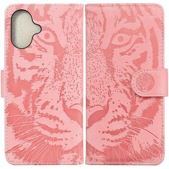 Θήκη τηλεφώνου δερμάτινη με ανάγλυφο μοτίβο τίγρης για iPhone 16 Plus (Πράσινο)