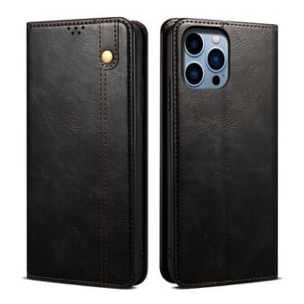 Θήκη τηλεφώνου από δέρμα με υφή Crazy Horse Oil Wax για iPhone 16 Pro (Μαύρο)
