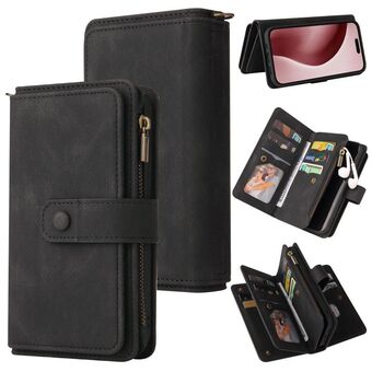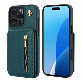 Θήκη τηλεφώνου από δέρμα με πολλαπλές θήκες για κάρτες και φερμουάρ, με αίσθηση δέρματος, για iPhone 16 Pro (Μαύρο)