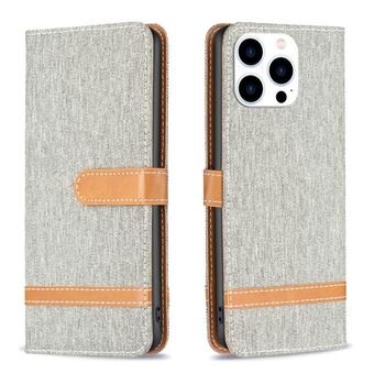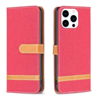 Θήκη τηλεφώνου από δέρμα με υφή denim και χρωματικό σχέδιο για iPhone 16 Pro (Κόκκινο)