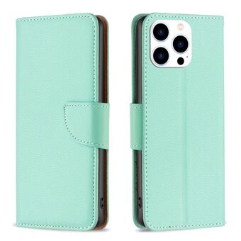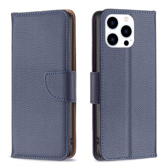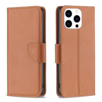 Θήκη τηλεφώνου από δέρμα με ανάγλυφη υφή lychee και καθαρό χρώμα, για iPhone 16 Pro (Γκρι)