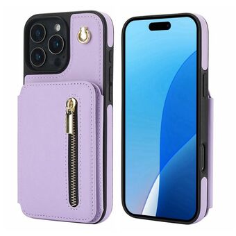 Θήκη κινητού τηλεφώνου με υφή δέρματος και φερμουάρ για iPhone 16 Pro YM006 με διπλό κορδόνι (Μωβ σκούρο)