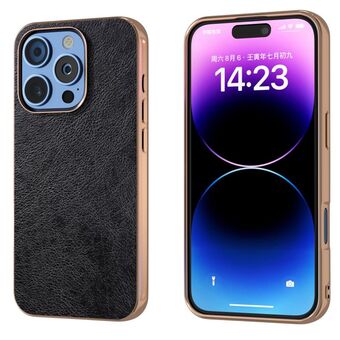 Θήκη κινητού τηλεφώνου με επένδυση γνήσιου δέρματος και ηλεκτρολυτικό πλαίσιο για iPhone 16 Pro ABEEL (Μαύρο)