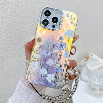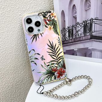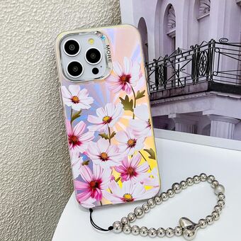 Θήκη τηλεφώνου με ηλεκτρολυτική επίστρωση και λουλούδια με λέιζερ για iPhone 16 Pro με λουρί καρπού (Σχέδια λουλουδιών AH3)