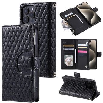 For iPhone 16 Pro Glitter Lattice Zipper Wallet Leather Phone Case(Black)