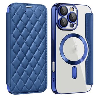 For iPhone 16 Pro Shield Magsafe RFID Anti-theft Rhombus Leather Phone Case(Blue)