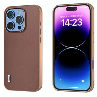Θήκη τηλεφώνου για iPhone 16 Pro ABEEL με ηλεκτρολυτικό πλαίσιο και γνήσιο δέρμα σειρά Xiaoya (Καφέ)