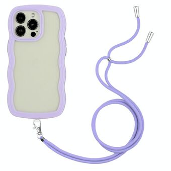 Θήκη τηλεφώνου για iPhone 16 Pro, διαφανής από TPU και PC σε χρώμα καραμέλας με κυματιστό σχέδιο και κορδόνι (Λευκό)
