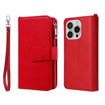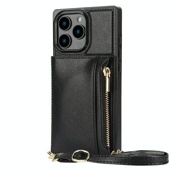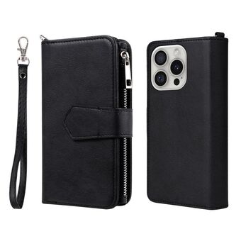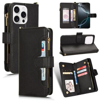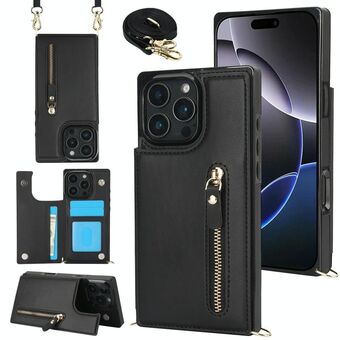 Θήκη για iPhone 16 Pro, Τετράγωνη Θήκη Πορτοφολιού με Φερμουάρ, TPU+PU, Μαύρη