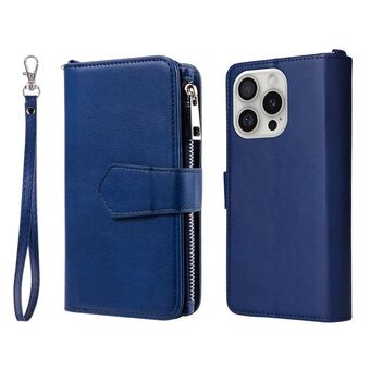 Θήκη κινητού τηλεφώνου 2 σε 1 με φερμουάρ, ανθεκτική στις κρούσεις, για iPhone 16 Pro, μονόχρωμη (Μαύρο)