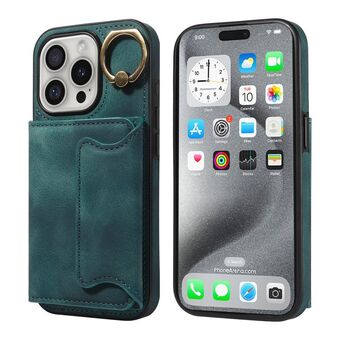 Θήκη τηλεφώνου για iPhone 16 Pro με αίσθηση δέρματος και θήκη καρτών με αγκράφα δακτυλιδιού (Κόκκινο)