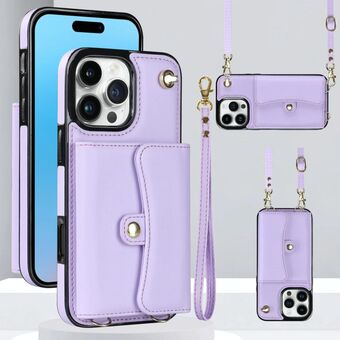 Θήκη κινητού για iPhone 16 Pro με υποδοχή κάρτας RFID και μακρύ λουρί (Μέντας Πράσινο)