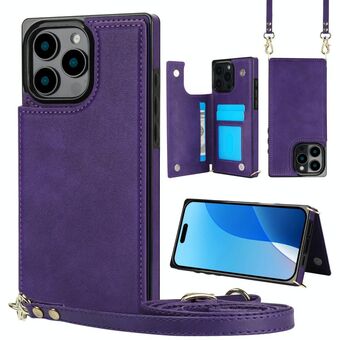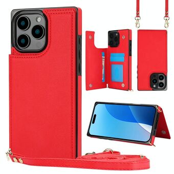 Θήκη τηλεφώνου τύπου πορτοφολιού με κάρτες, διαγώνια, τετράγωνη, με διπλή αγκράφα για iPhone 16 Pro (Κόκκινη)
