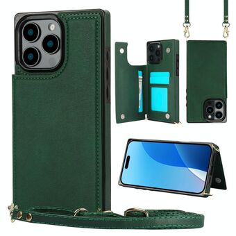 Θήκη τηλεφώνου από δέρμα με υφή λύτσι, τετράγωνη αγκράφα για iPhone 16 Pro, σε στυλ crossbody (Πράσινο)