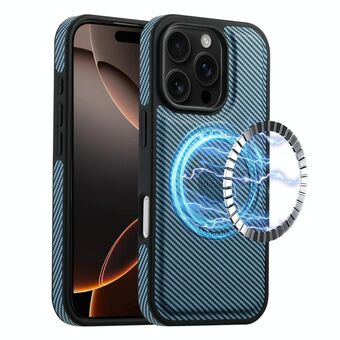 Θήκη τηλεφώνου MagSafe από δέρμα με υφή ανθρακονήματος για iPhone 16 Pro (Μαύρο) (Denior)