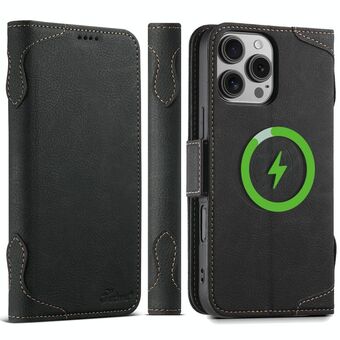Θήκη τηλεφώνου από δέρμα με μαγνητική σύνδεση Magsafe, οριζόντια, αναδιπλούμενη, πολυλειτουργική για iPhone 16 Pro SUTENI J07 (Μαύρο) (Suteni)