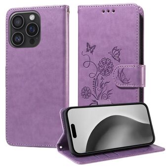 For iPhone 16 Pro Embossed Butterfly Flowers Leather Phone Case(Purple)