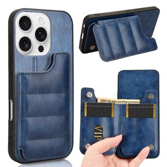 For iPhone 16 Pro Cow Pattern Sewing Card Bag Phone Case(Blue)