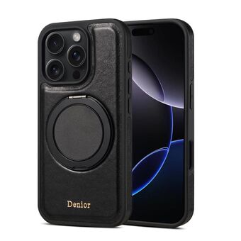 For iPhone 16 Pro Denior A17 Genuine Leather Gear Magnetic Holder Phone Case(Black) (Denior)