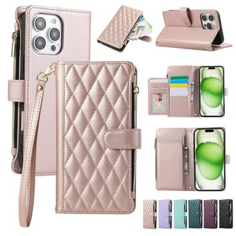 For iPhone 16 Pro YM016 Rhombic Zipper Card Wallet Leather Phone Case with Lanyard(Dark Purple)