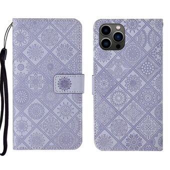 Για iPhone 16 Pro Ethnic Style ανάγλυφο μοτίβο δερμάτινη θήκη τηλεφώνου (μωβ)
