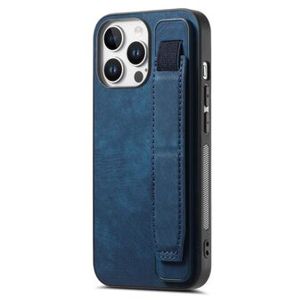 Για iPhone 16 Pro Ρετρό Wristband Holder δέρμα πίσω υπόθεση τηλεφώνου (μπλε)