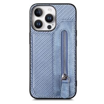 Για iPhone 16 Pro Carbon Fiber οριζόντια Flip φερμουάρ πορτοφόλι υπόθεση τηλέφωνο (μπλε)