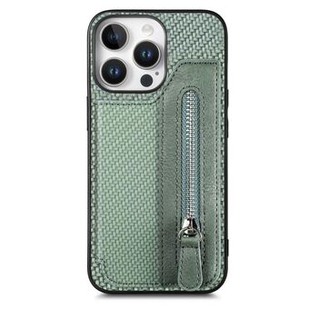 Για iPhone 16 Pro Carbon Fiber οριζόντια Flip φερμουάρ πορτοφόλι υπόθεση τηλέφωνο (πράσινο)