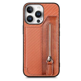 Για iPhone 16 Pro Carbon Fiber οριζόντια Flip φερμουάρ πορτοφόλι υπόθεση τηλέφωνο (καφέ)