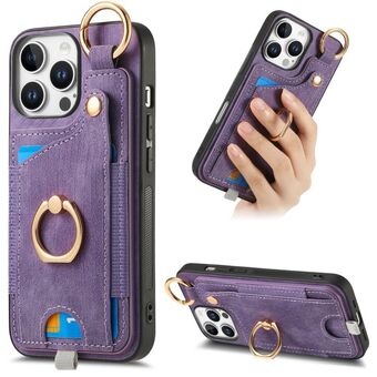 Για το iPhone 16 Pro Ρετρό δέρμα αίσθηση δαχτυλίδι κάρτα τσάντα υπόθεση τηλεφώνου με Hang Loop (μωβ)