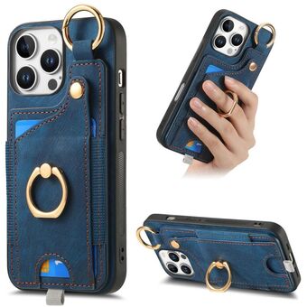 Για το iPhone 16 Pro Ρετρό δέρμα αίσθηση δαχτυλίδι κάρτα τσάντα υπόθεση τηλεφώνου με κρεμάσει βρόχο (μπλε)