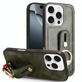 Για το iPhone 16 Pro Wristband δέρμα πίσω υπόθεση τηλεφώνου (πράσινο)