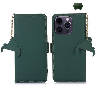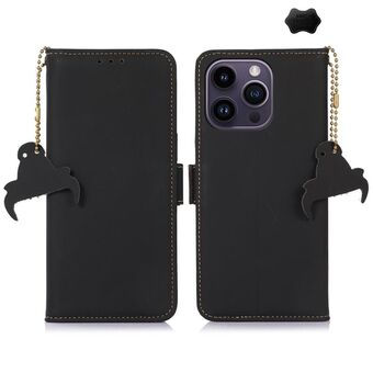Θήκη τηλεφώνου από γνήσιο δέρμα με μαγνητική προστασία RFID για iPhone 16 Pro (Μαύρο)
