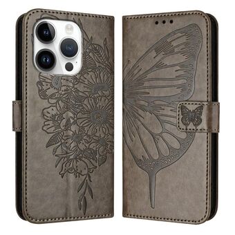 Θήκη τηλεφώνου από δέρμα με ανάγλυφο σχέδιο πεταλούδας για iPhone 16 Pro (Κόκκινο)