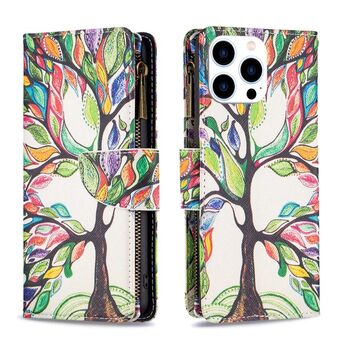 Θήκη δερμάτινη για iPhone 16 Pro με σχέδιο έγχρωμης ζωγραφικής και φερμουάρ (Δέντρο)