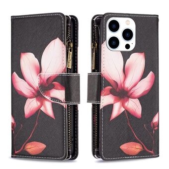 Θήκη δερμάτινη για iPhone 16 Pro με σχέδιο έγχρωμης ζωγραφικής και φερμουάρ (Λωτός)