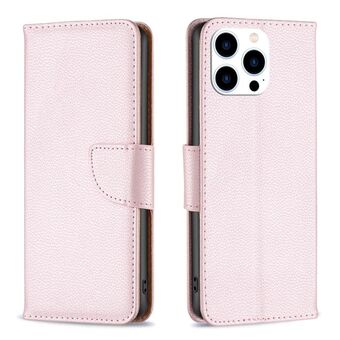 Θήκη τηλεφώνου από δέρμα με ανάγλυφη υφή λυτσί και απλό χρώμα για iPhone 16 Pro (Μαύρο)