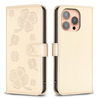 Θήκη τηλεφώνου από ανάγλυφο δέρμα με τετράφυλλο τριφύλλι για iPhone 16 Pro (Κόκκινο Ρόδο)
