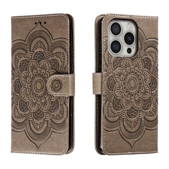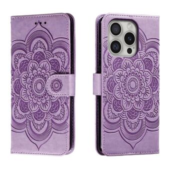 Θήκη τηλεφώνου από δέρμα με οριζόντιο άνοιγμα και ανάγλυφο σχέδιο Mandala για iPhone 16 Pro (Μπλε)