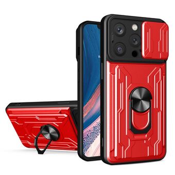 For iPhone 16 Pro Sliding Camshield TPU+PC Phone Case with Card Slot(Red)