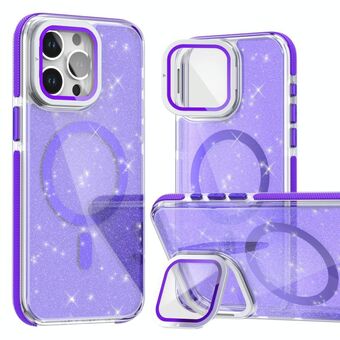For iPhone 16 Pro Two-color Glitter Powder Lens Holder Magsafe Phone Case(Purple)