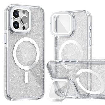 For iPhone 16 Pro Two-color Glitter Powder Lens Holder Magsafe Phone Case(White)