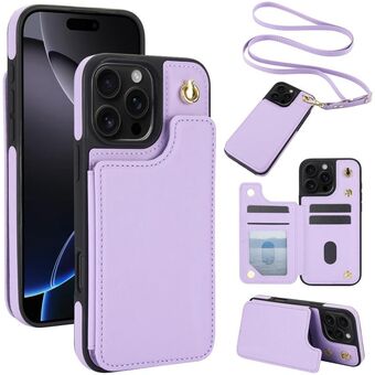 For iPhone 16 Pro Crossbody Dual-Buckle Wallet Back Leather Phone Case(Light Purple)